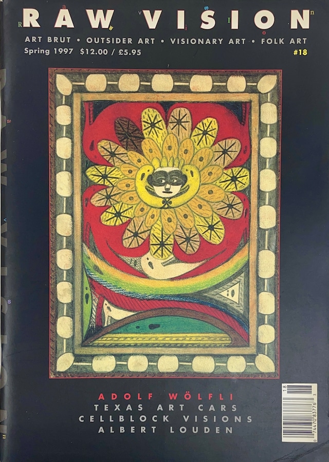 Raw Vision 18 Spring 1997 International Journal of Intuitive and Visionary Art John Maizels ジョン・マイゼルス:edit Published by Raw Vision Ltd 1997年 ソフトカバー/soft cover 表紙折れ有り/cover damaged 英語 ●Adolf Wölfli アドルフ・ヴェルフリ ●Texas Art Cars ●Cellblock Visions ●Albert Louden アルバート・ラウデン Art Brut,Outsider Art,Visionary Art ,Folk Art アール・ブリュット、アウトサイダーアート、ビジョナリーアート、フォークアート