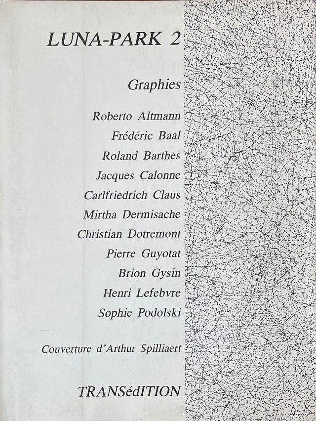 MARC DACHY マルク・ダシー :編集 TRANSédITION, Paris刊 1976年 ソフトカバー/soft cover 少擦れ 24×18cm p.144 フランス語 Arthur Spilliaert アルチュール・スピリアールト:表紙カバー Roberto Altmann ロベルト・アルトマン Frederic Baal フレデリック・バアル Roland Barthes ロラン・バルト Jacques Calonne ジャックス・カロンヌ Carlfriedrich Claus カールフリードリッヒ・クラウス Mirtha Dermisache ミルタ・ダーミサッチ Christian Dotremont クリスチャン・ドートルモン Pierre Guyotat ピエール・ギュヨタ Brion Gysin ブライオン・ガイシン Henri Lefebvre アンリ・ルフェーヴル Sophie Podolski ソフィー・ポドルスキ