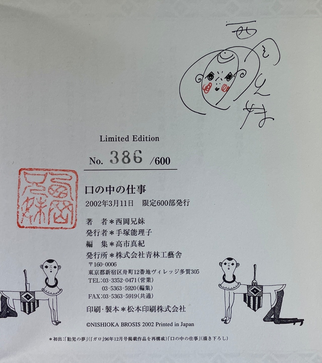 描き下ろし詩画集「口の中の仕事」に「胎児の夢」(「ガロ」1996年12月掲載作を再構成)を収録