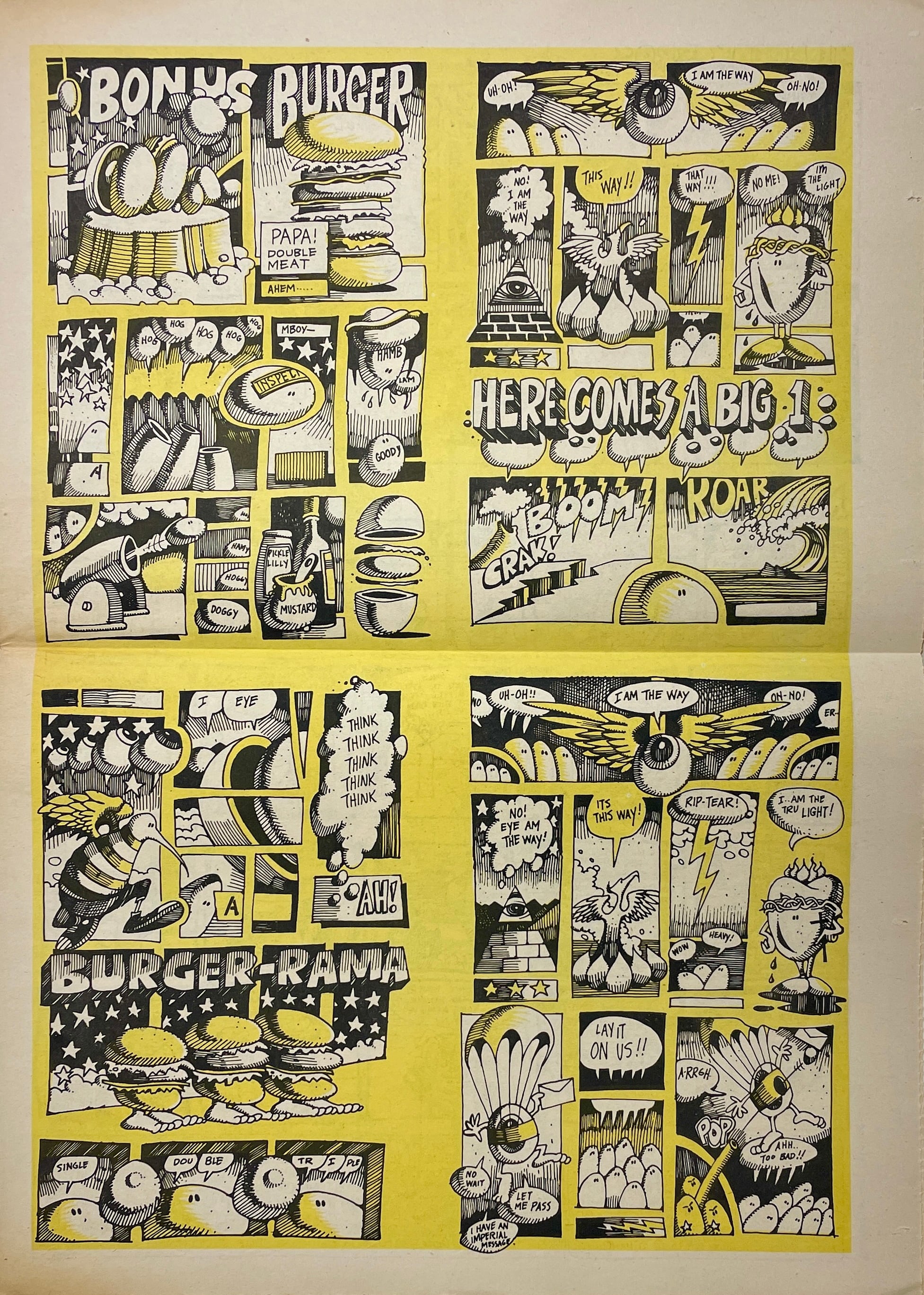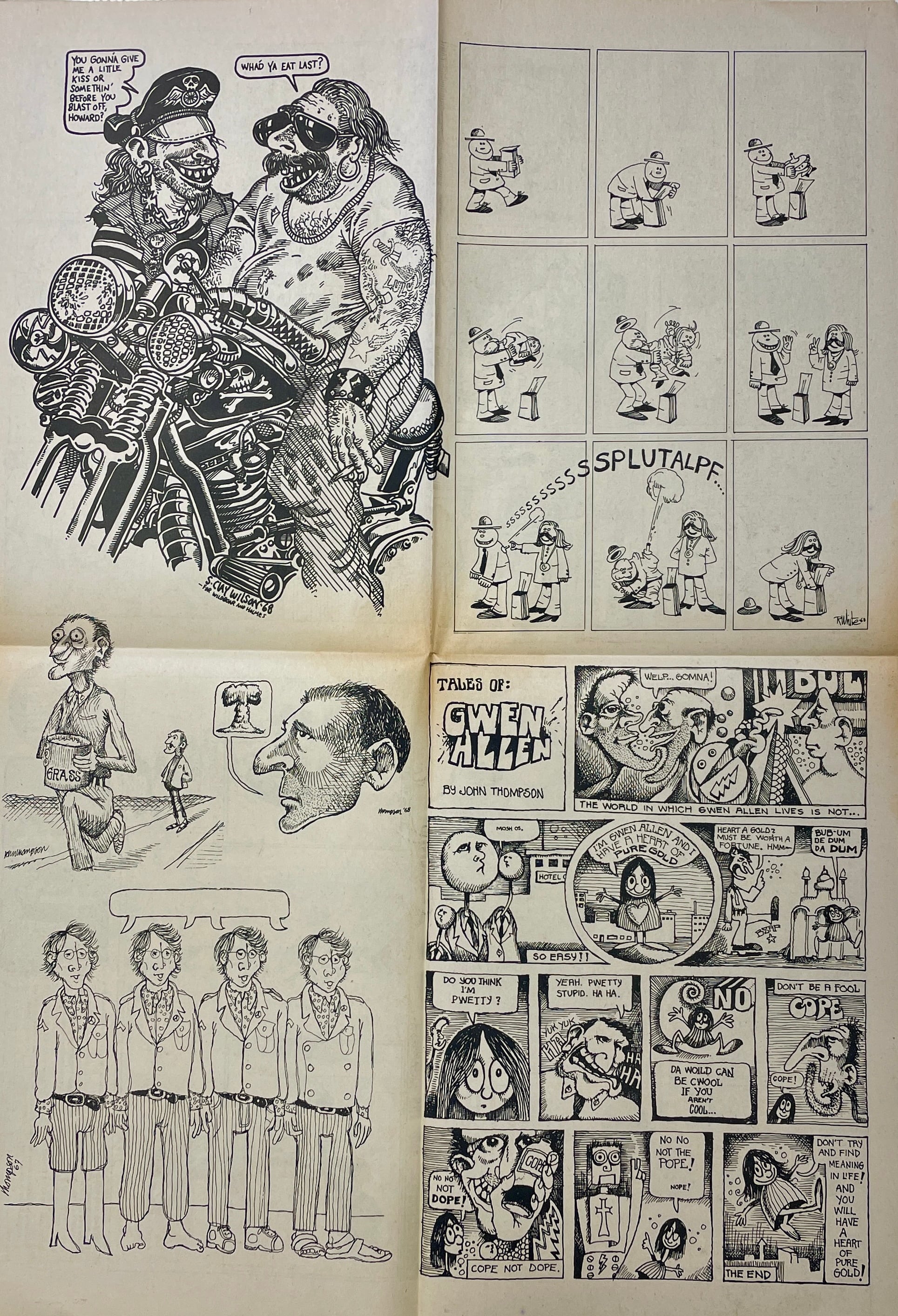 Robert Crumb, Buckwheat Florida Jr., Andy Martin, Jim Osborne, Gilbert Shelton, John Thompson, Peter Webster, Ron White, S. Clay Wilson