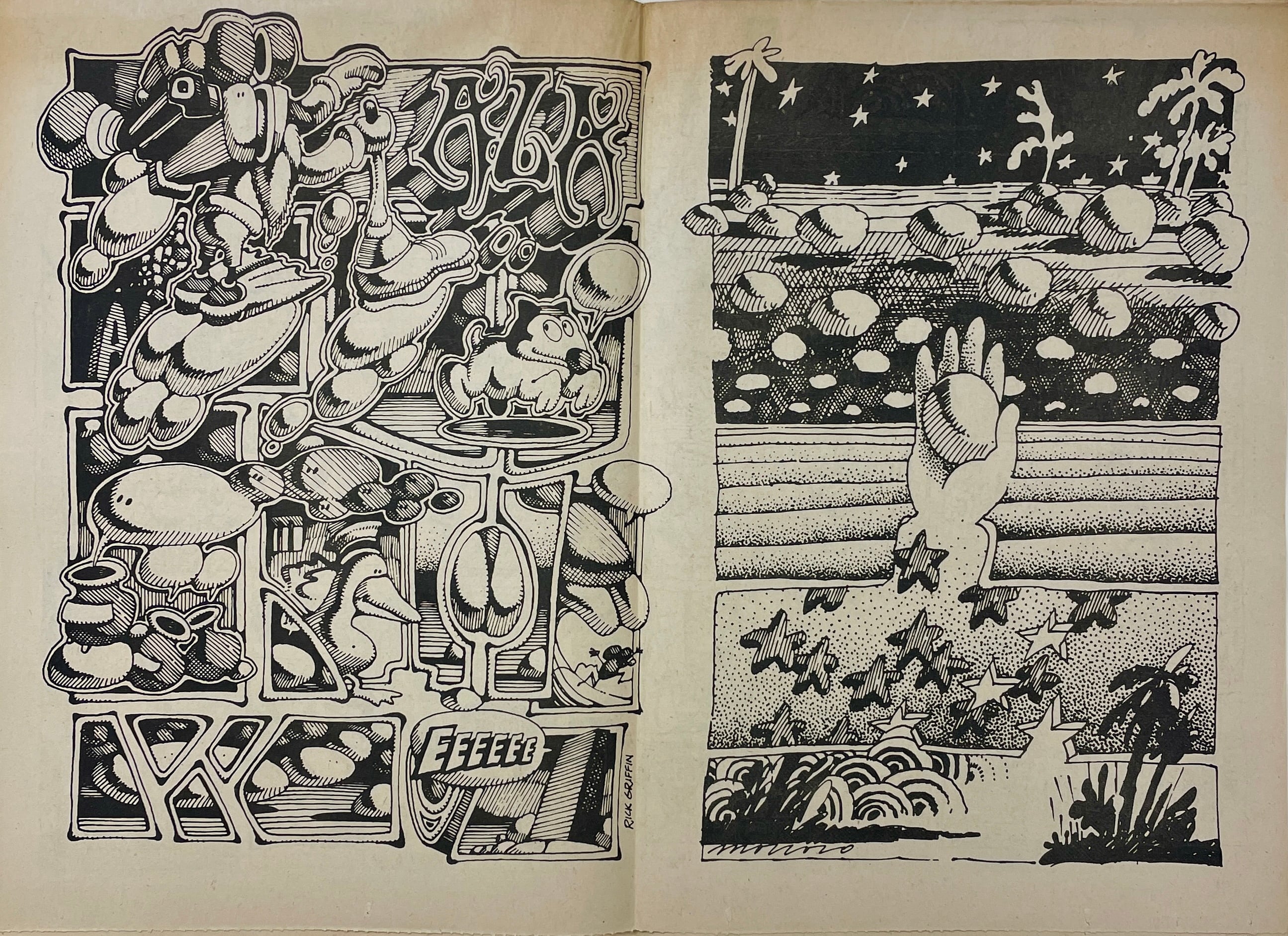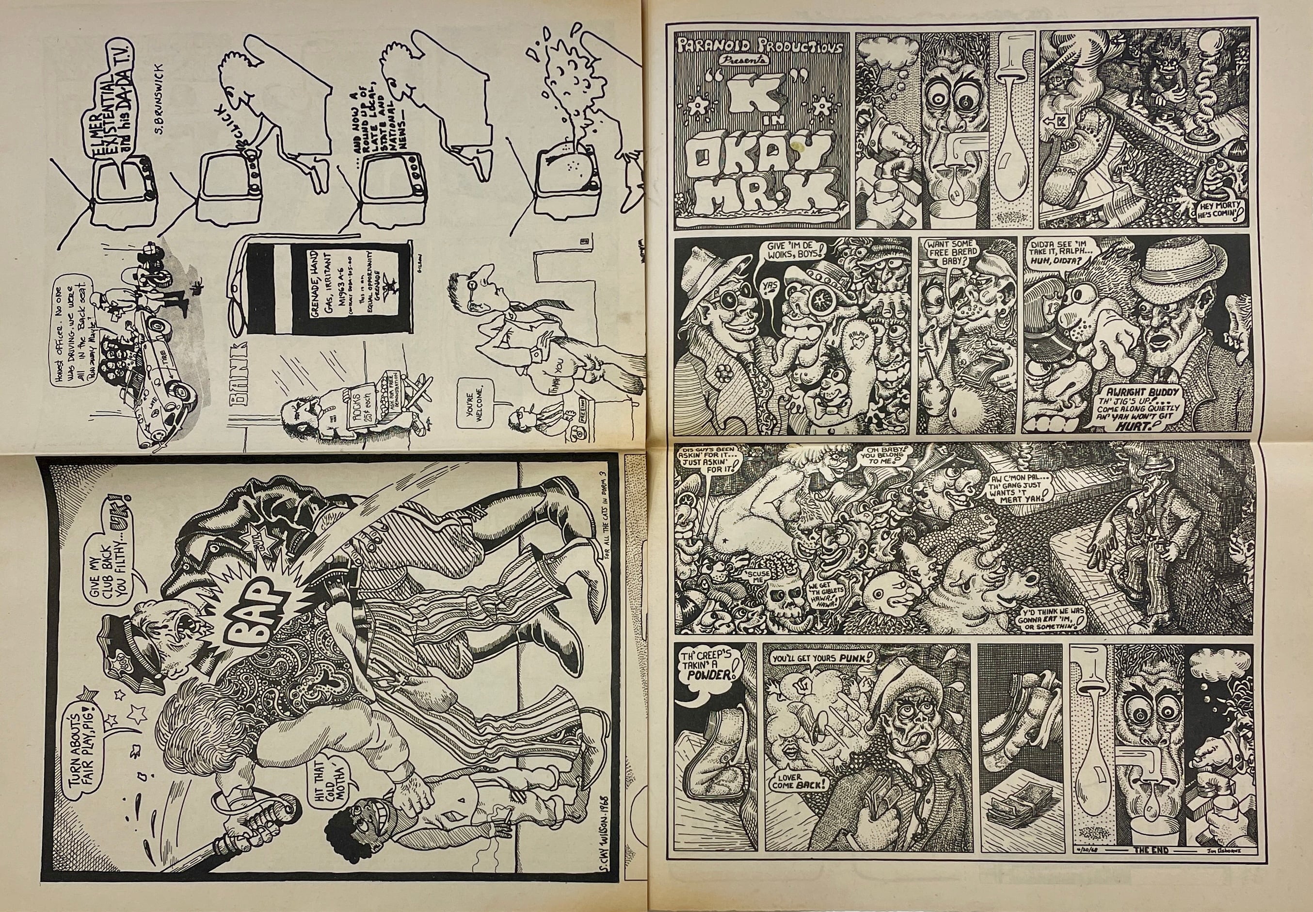 Peter Almasy, Joel Beck, Vaughn Bodē, Robert Crumb, Buckwheat Florida Jr., Justin Green, Ronald Lipking, Andy Martin, Jim Osborne, Kent Perry, Trina Robbins, Kay Rudin, Don Schenker, John Thompson, Hak Vogrin, Larry Welz, Skip Williamson, S. Clay Wilson Double-issue