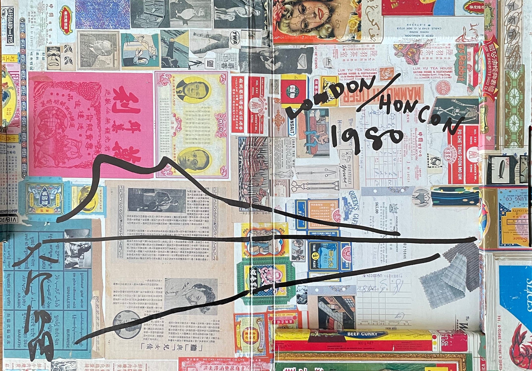 《倫敦/香港》一九八〇 《 LONDON/HONCON 》1980 大竹伸朗ドローインサイン入 / Shinro Ohtake drawing and signed